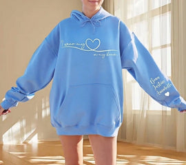 Personalized Mom Hoodie with Kids' Names, "I Wear My Heart On My Sleeve" Embroidered Design, Mama Custom Sweatshirt, Mother's Day Gift from Children, Unique Personal Gift for Mom