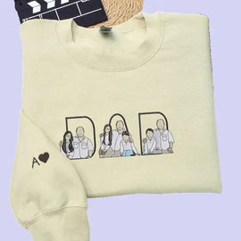 Father's Day Embroidered Photo Portrait Sweatshirt | Customized Portrait Gift for Dad | Happy Father's Day Keepsake