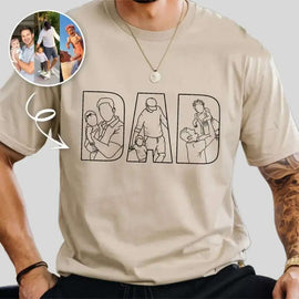 Photo-to-Portrait Custom Dad Shirt | Personalized Photo Outline Tee for Papa | Father's Day Gift