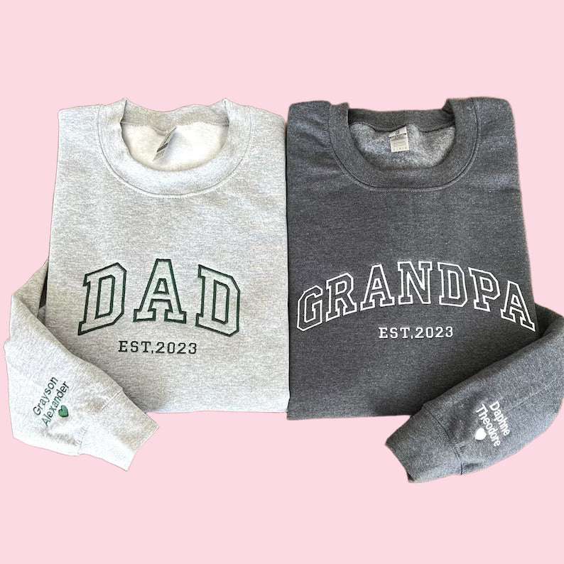 Dad Embroidered Sweatshirt – Name+Heart Sleeve & Est Date Gift for New Dads